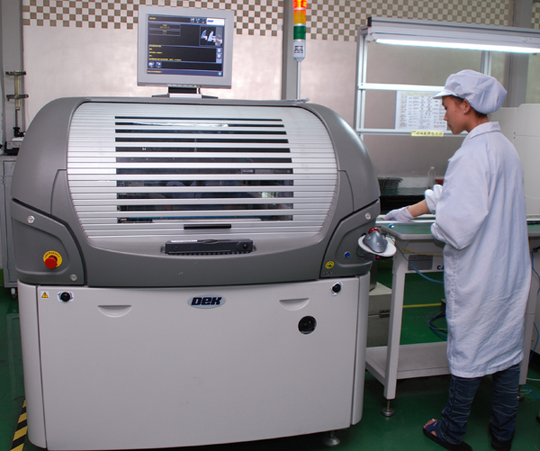 防靜電無塵SMT工作室,全自動印刷機,防靜電服帽,?防靜電樹脂地板確保阻抗<1Ohm,滿足高標準防靜電措施要求。